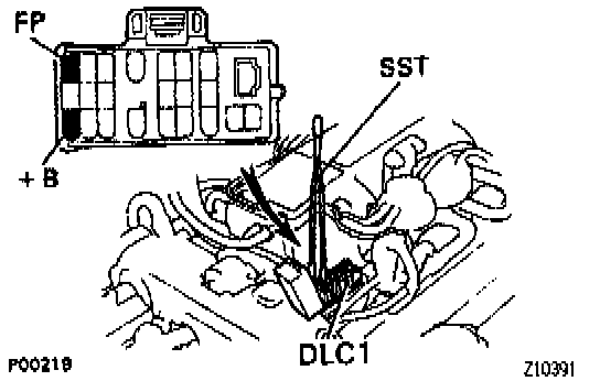 8. Using jumper, connect terminals B and FP of the data link connector 1. (SST 09843-18020)