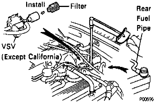 3. Remove the filter from the vacuum switching valve for exhaust gas recirculation.
