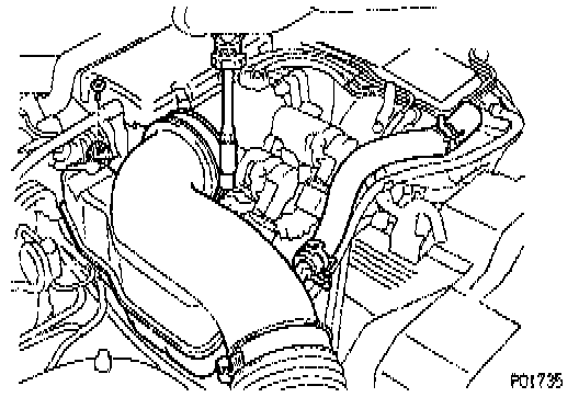 - Connect the end portions of the intake air connector to the throttle body and air cleaner hose.