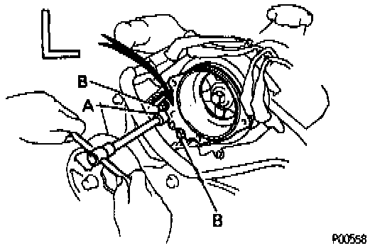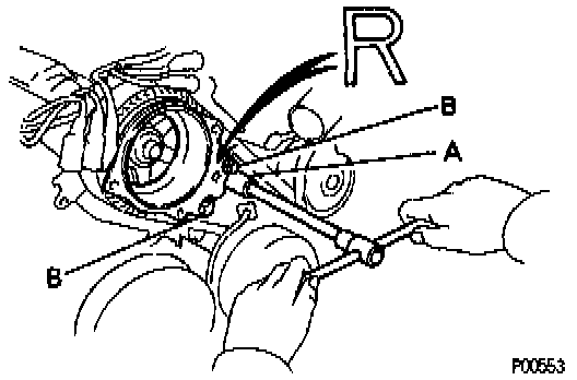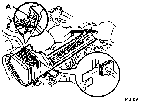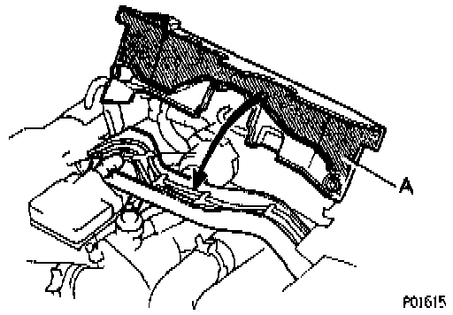 - Fit the portion A of the timing belt cover, matching it with the lower high-tension cord cover.