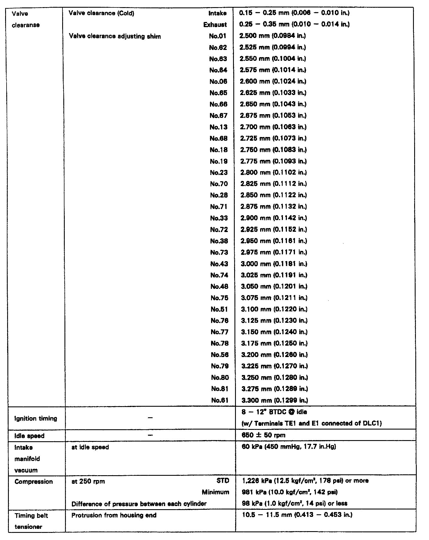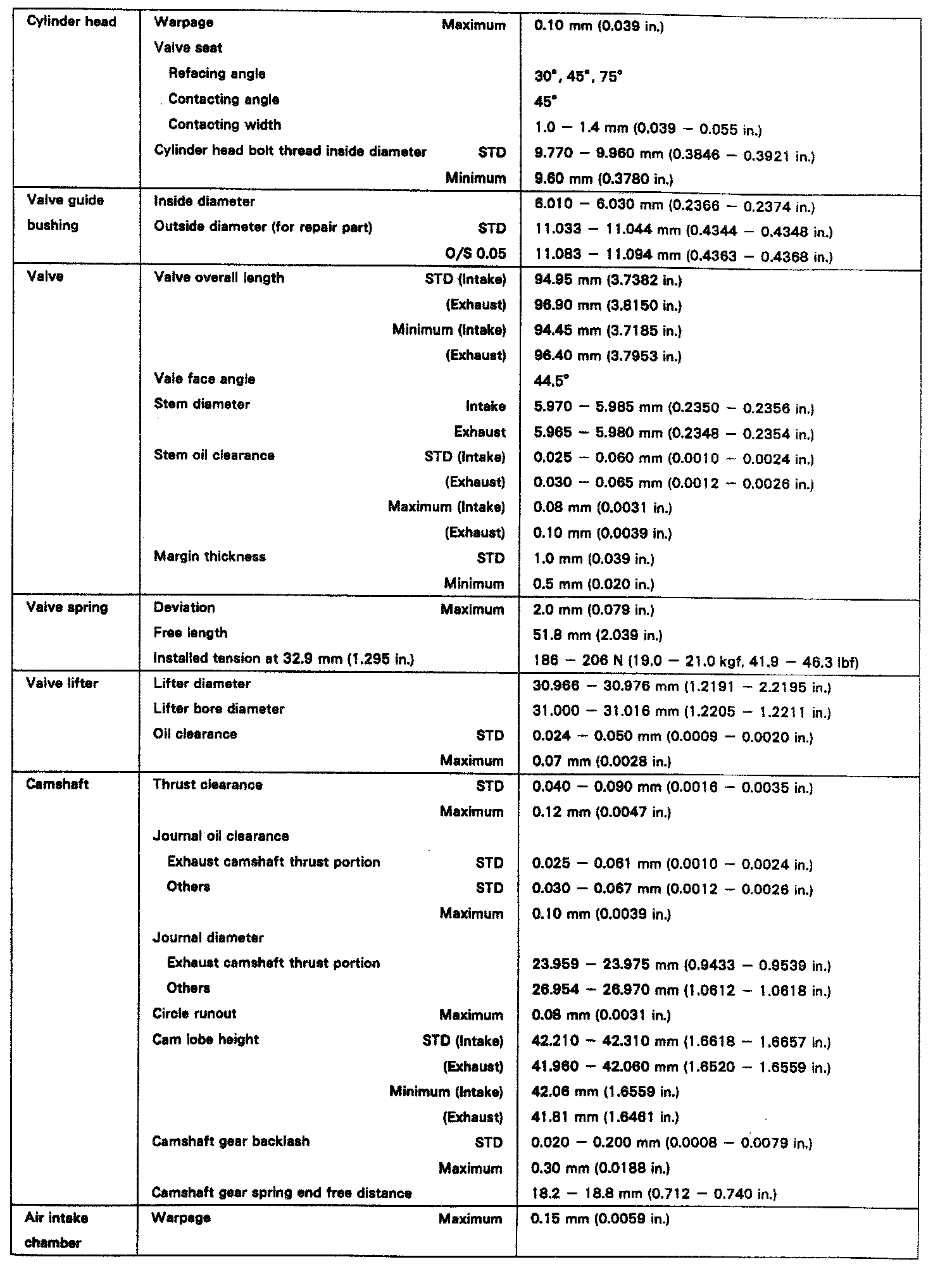 ENGINE SPECIFICATIONS