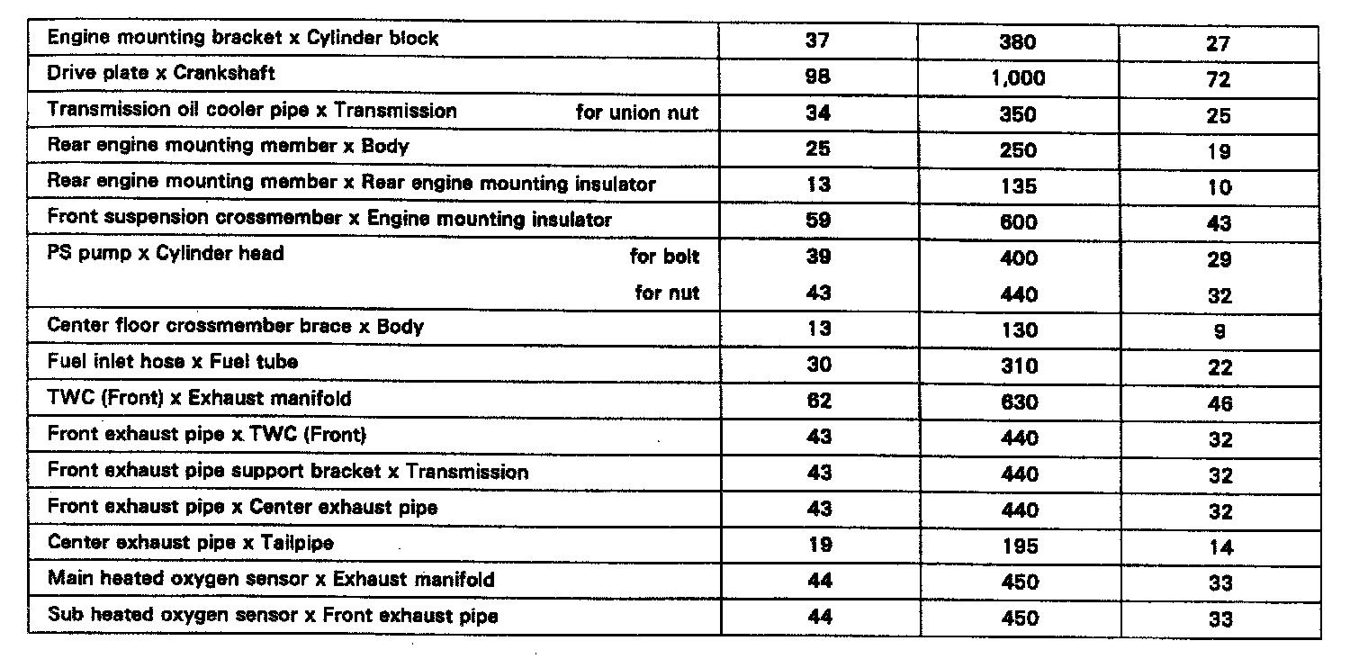 TIGHTENING SPECIFICATIONS
