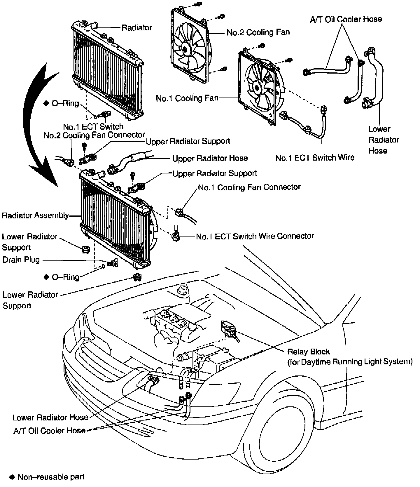 13. Remove No.2 cooling fan from radiator.
