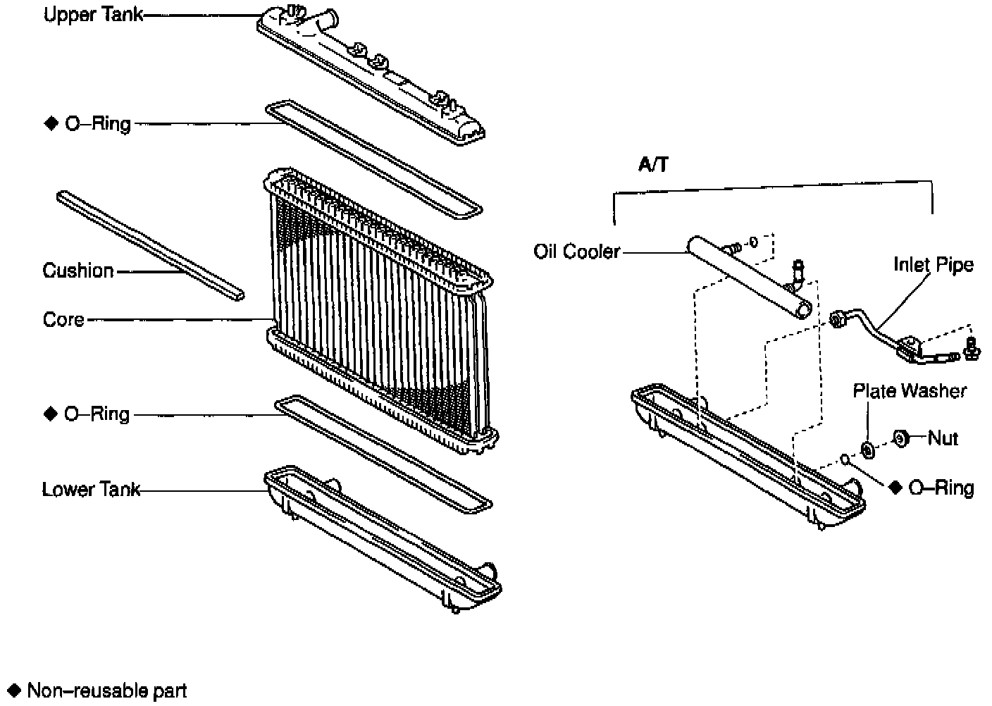 9. Remove A/T Oil cooler hoses from radiator.