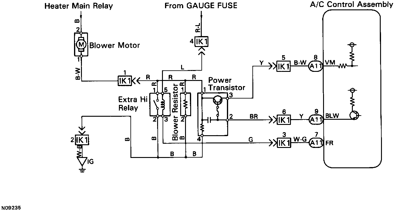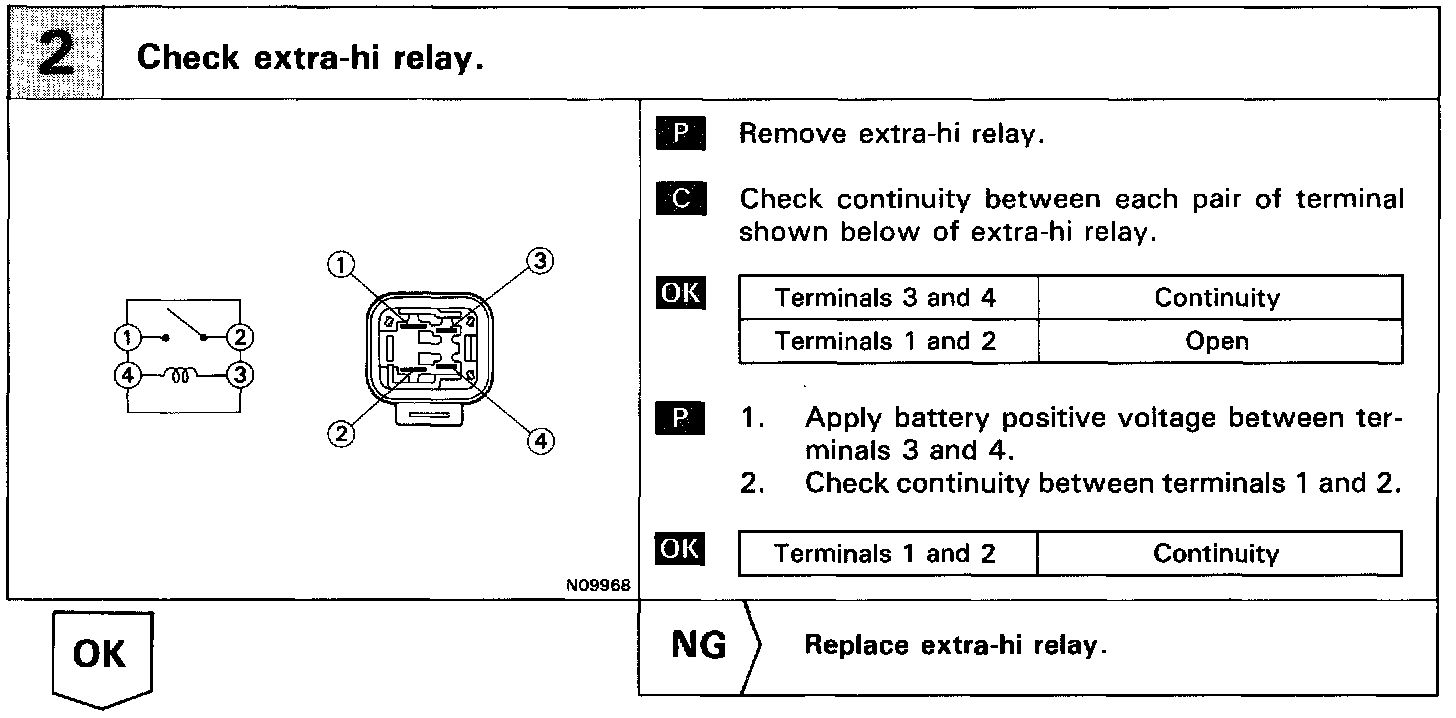 The extra-Hi relay is switched on by signals from the air conditioning