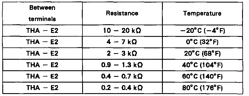 - Using an ohmmeter, measure the resistance between terminals THA and E2.