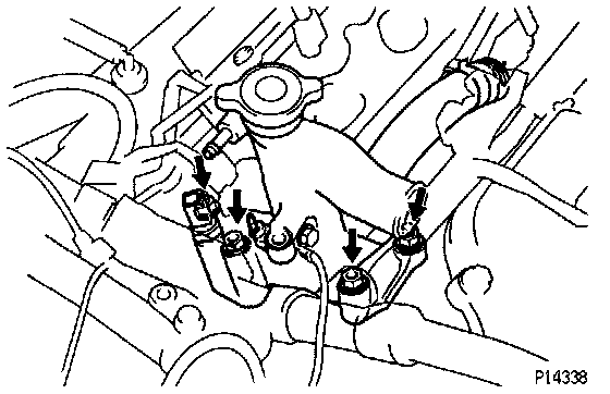 2. REINSTALL WATER OUTLET AND RH ENGINE MOUNTING STAY