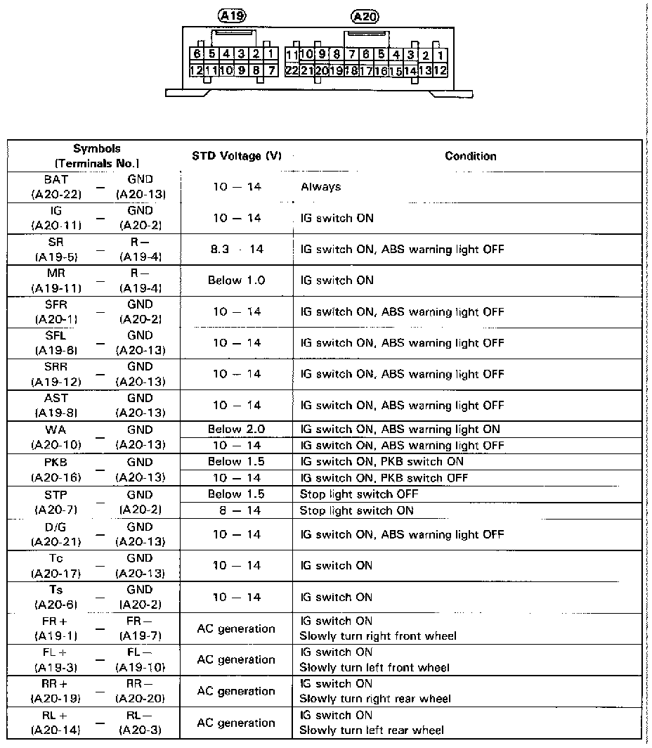 Fig. 22 ABS ECU Terminal Values: