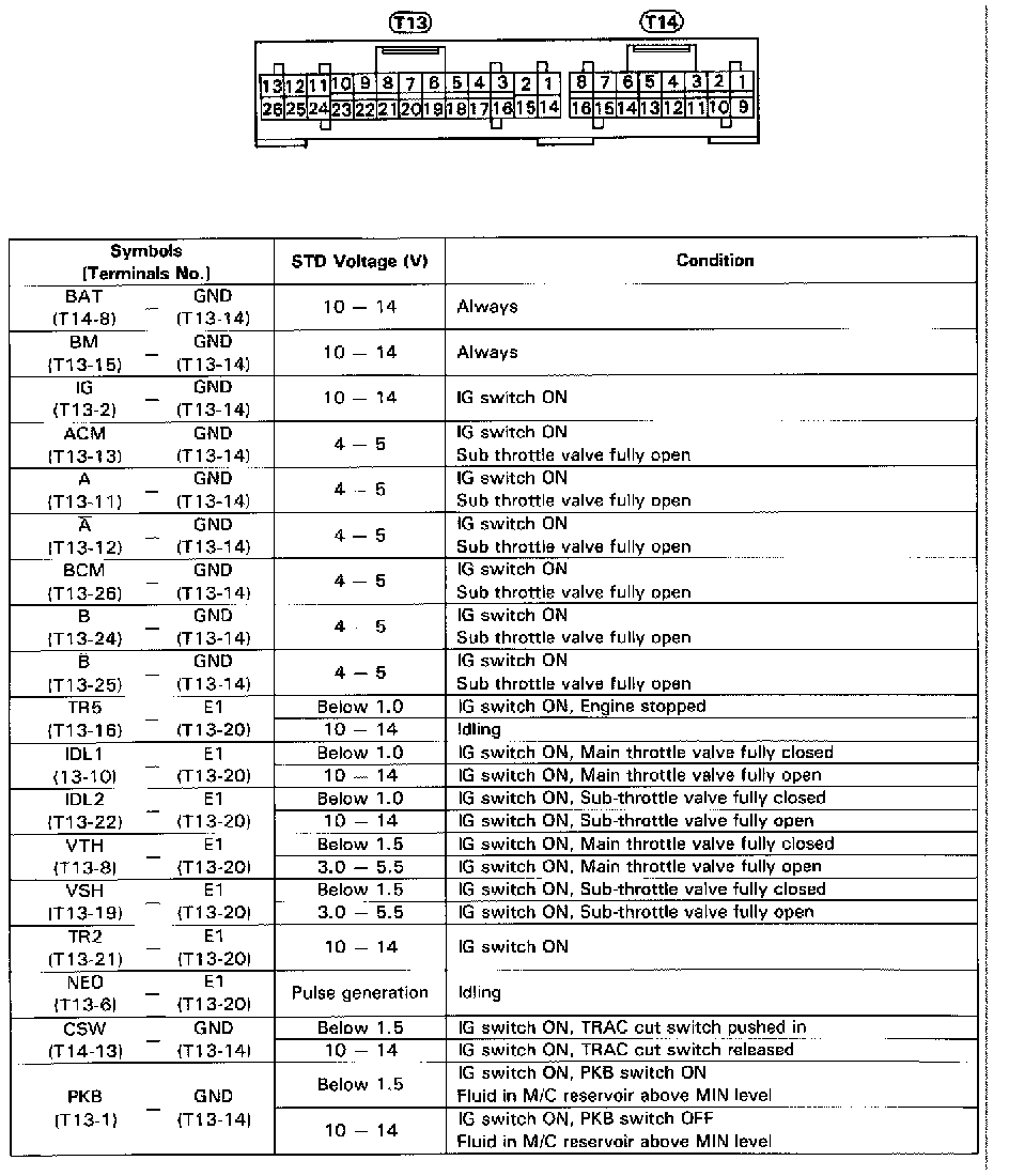 Fig. 28 TRAC ECU Terminal Values (Part 1 Of 2):