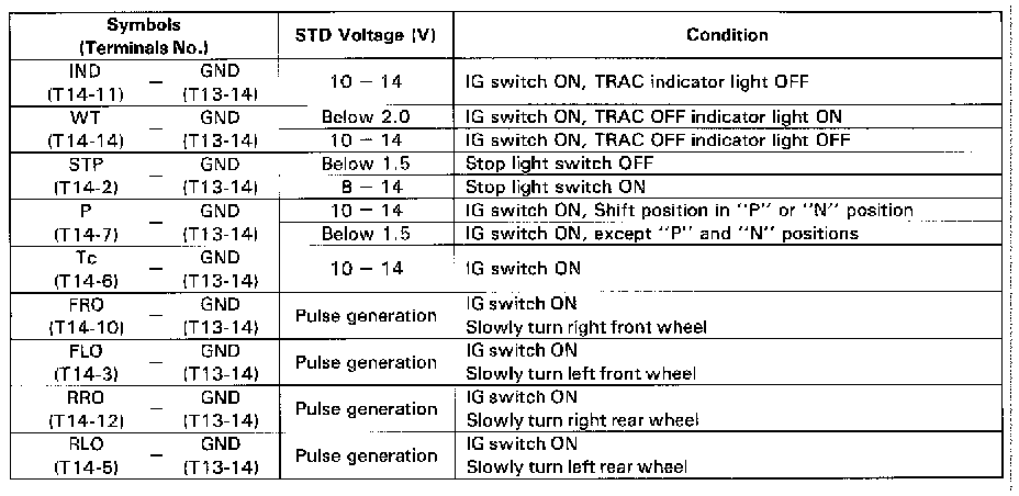 Fig. 28 TRAC ECU Terminal Values (Part 2 Of 2):