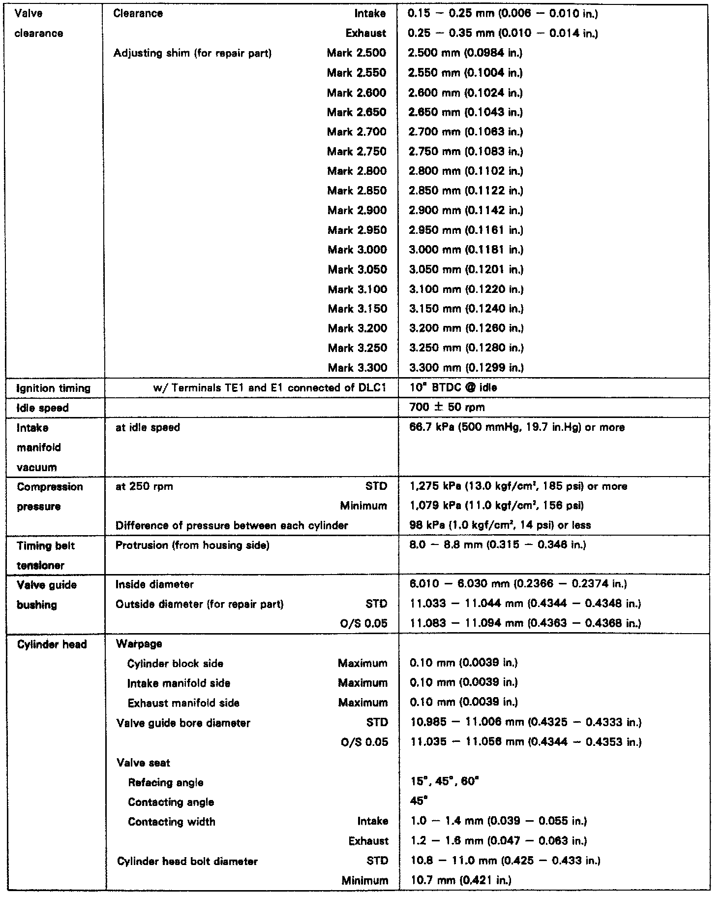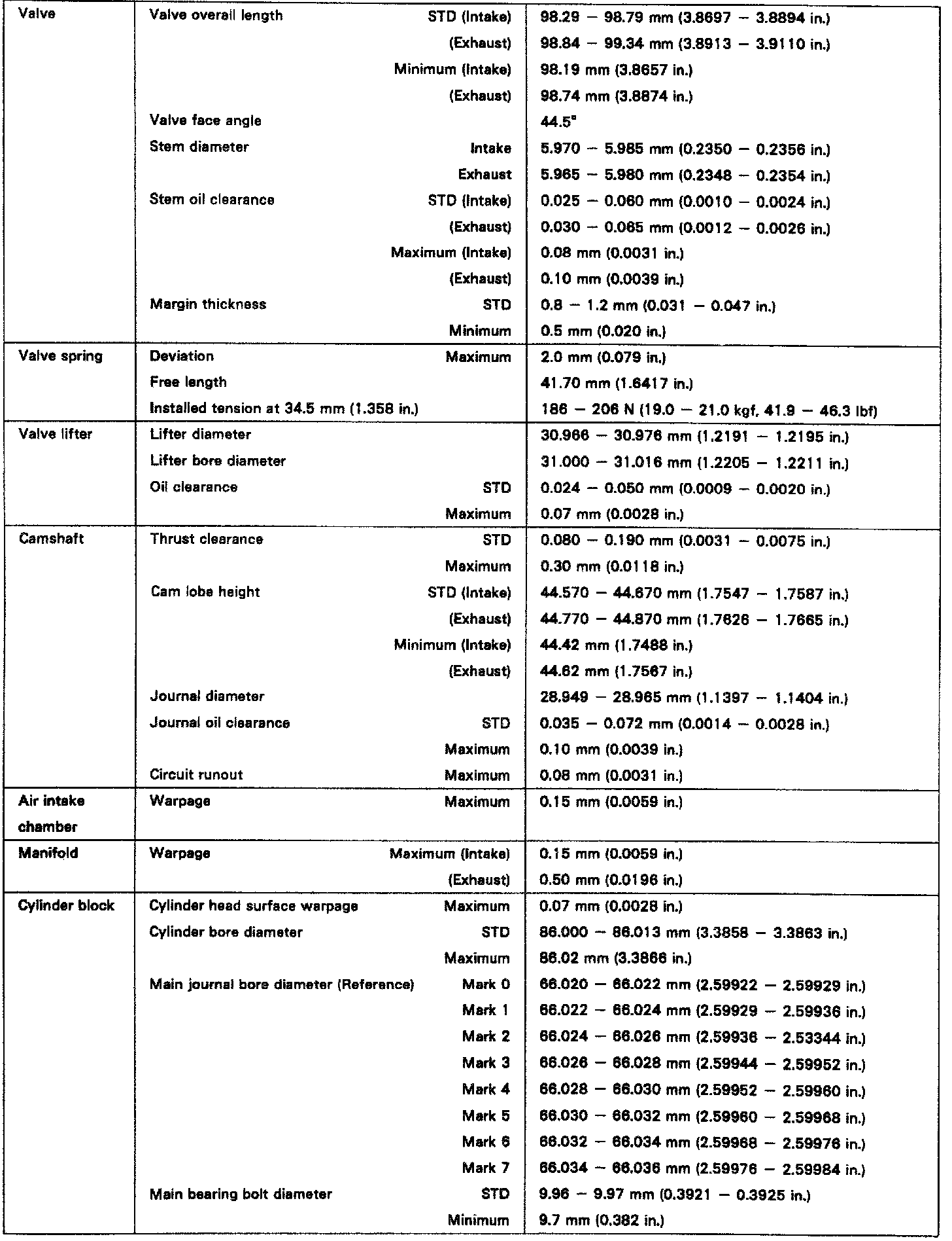 ENGINE SPECIFICATIONS