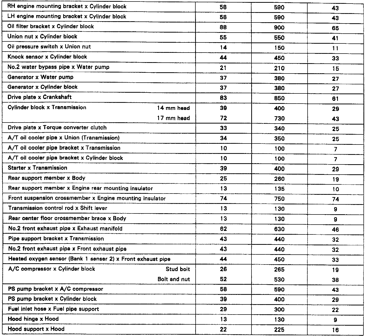 TIGHTENING SPECIFICATIONS