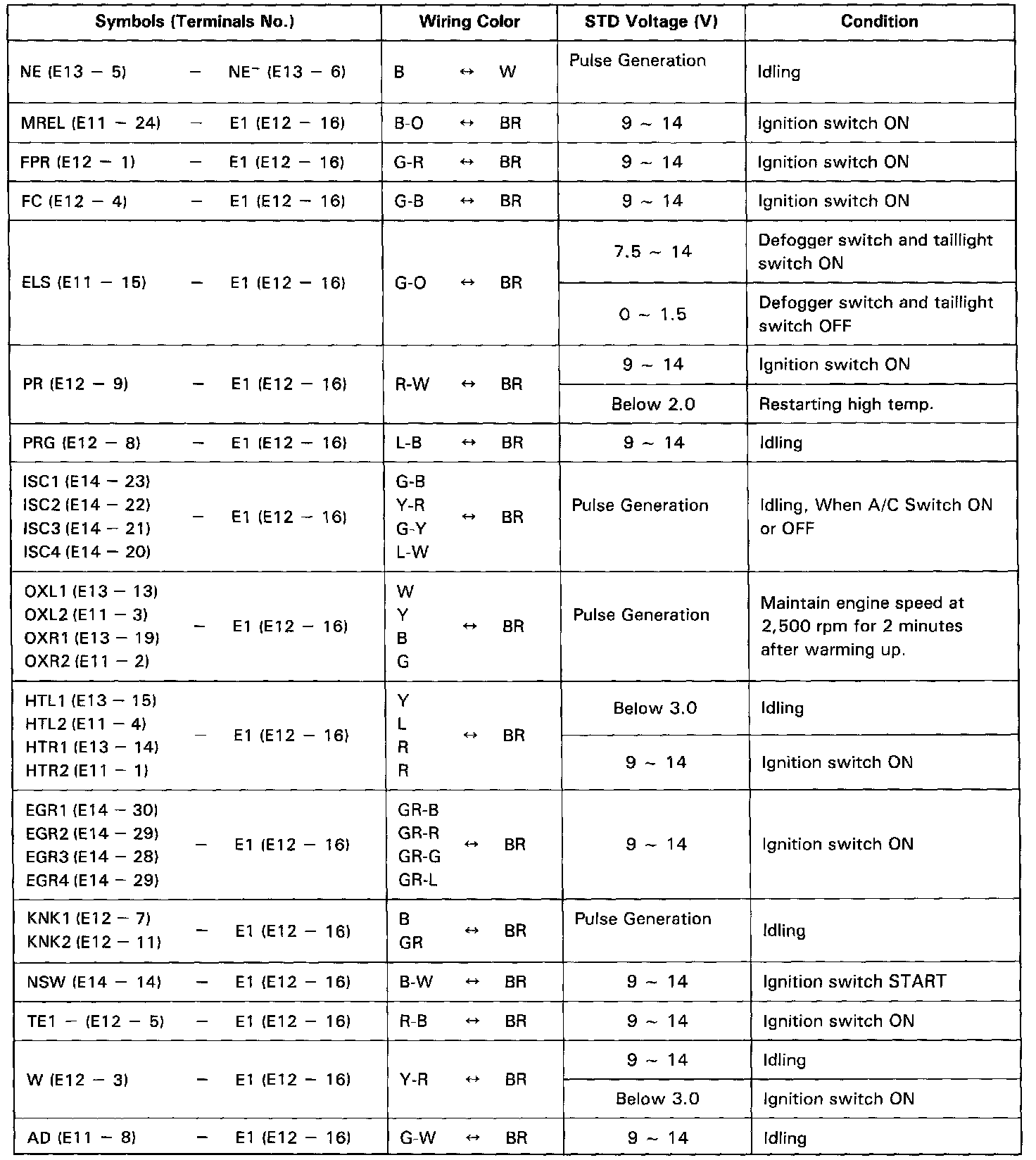Standard Value Of ECM Terminals (Part 3 Of 3):