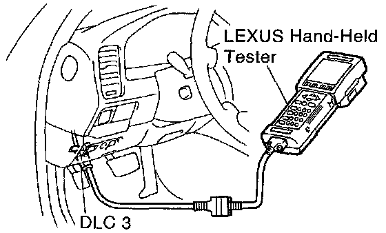 3. Connect the OBD II scan tool or LEXUS hand-held tester to DLC3 in the fuse box at the lower left of the instrument panel.