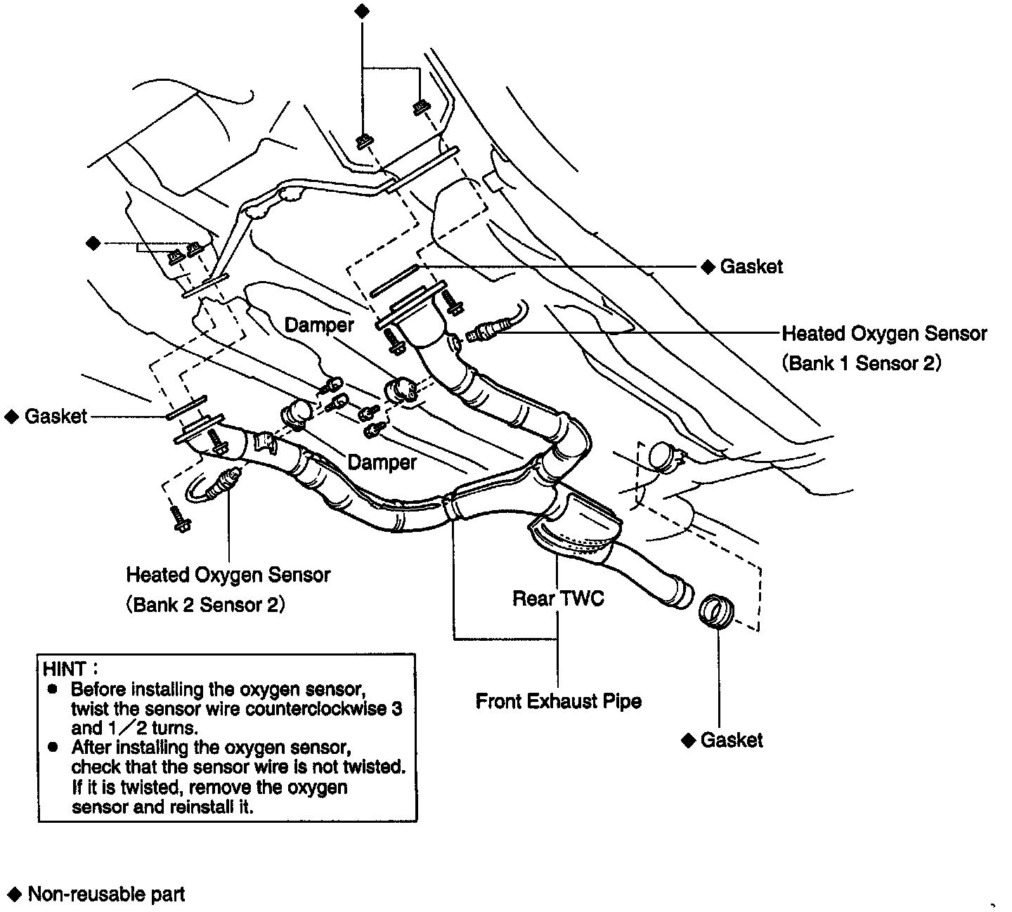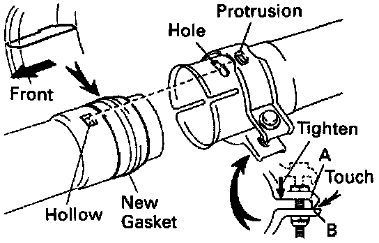- Install a new gasket to the exhaust pipe in the direction indicated in the illustration.