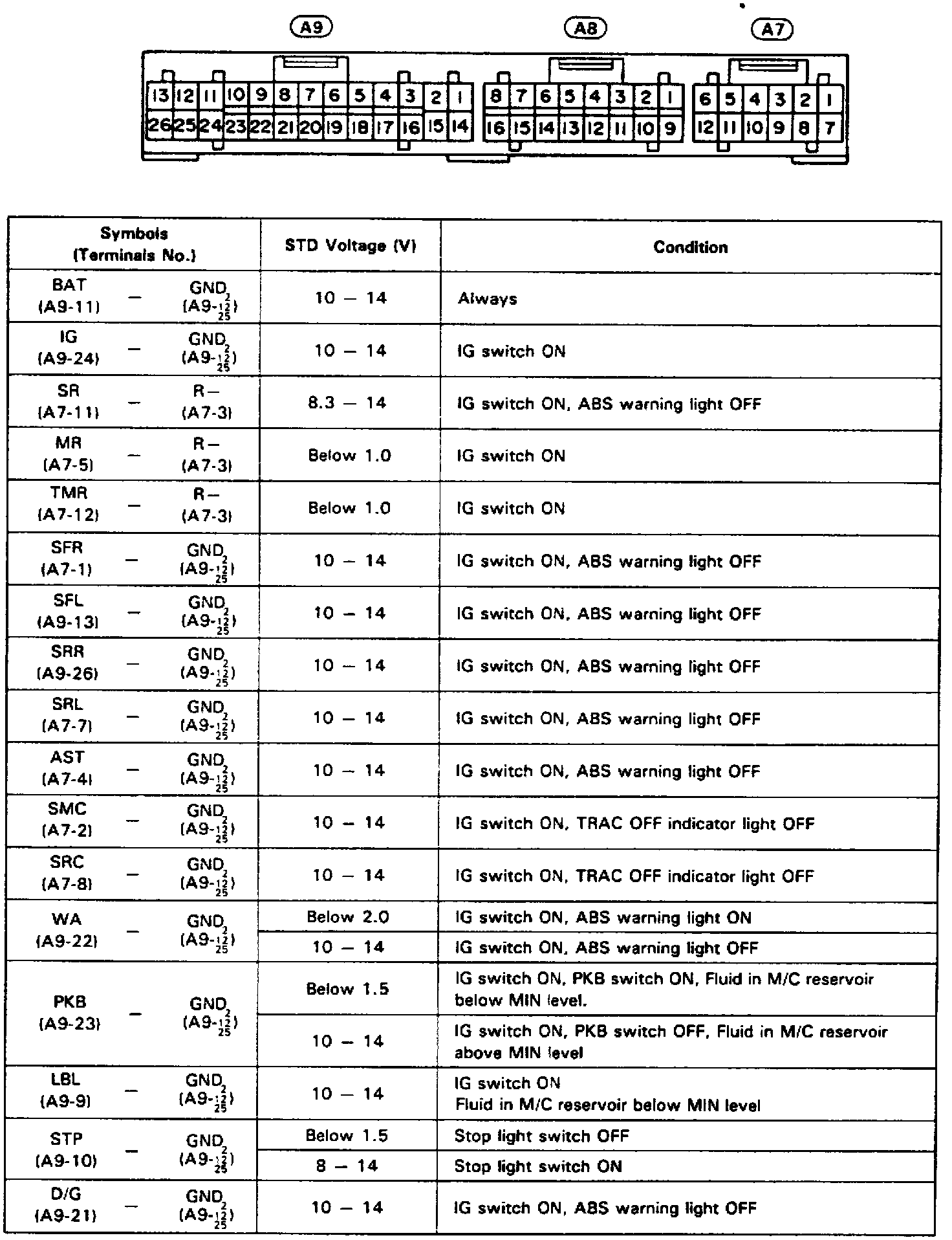 Fig. 34 ABS & TRAC ECU Terminal Identification & Values (Part 1 Of 2):