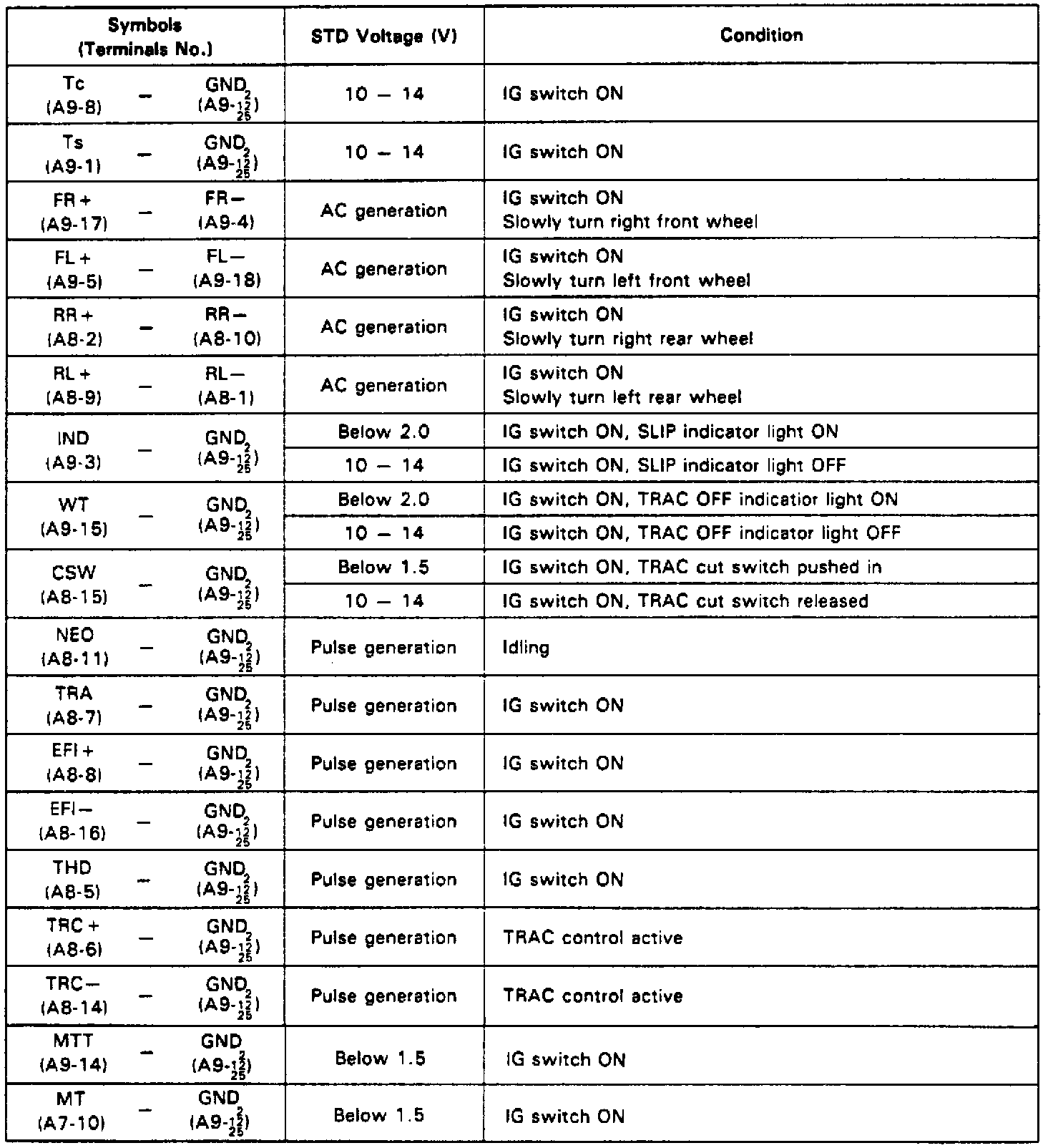 Fig. 34 ABS & TRAC ECU Terminal Identification & Values (Part 2 Of 2):