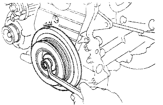17. Install water pump pulley, fan with fluid coupling and drive belt