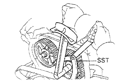 (c) Using SST to hold the pulley, torque the pulley bolt. SST 09960-10010 (09962-01000)