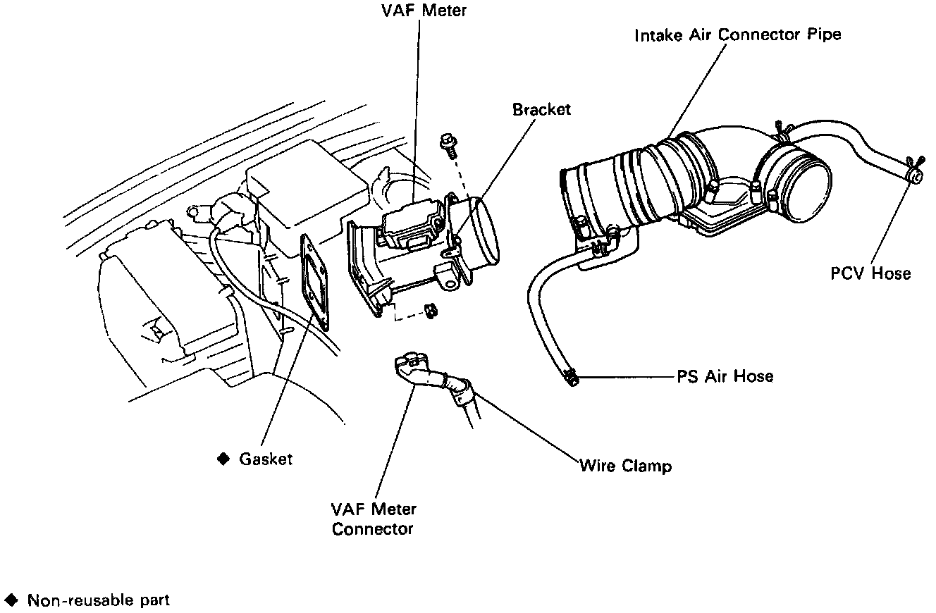- Install a new gasket and the VAF meter with the 4 nuts and a bolt.
