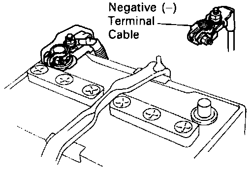 CAUTION: Work must be started after 90 seconds from the time the ignition switch is turned to the LOCK position and the negative (-) terminal cable is disconnected from the battery.