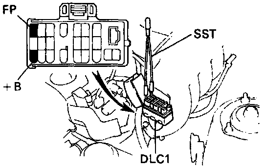 - Using SST 09843 - 18020, connect terminals +B and FP of the DLC 1.