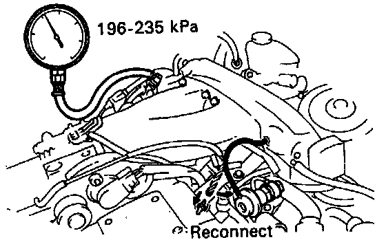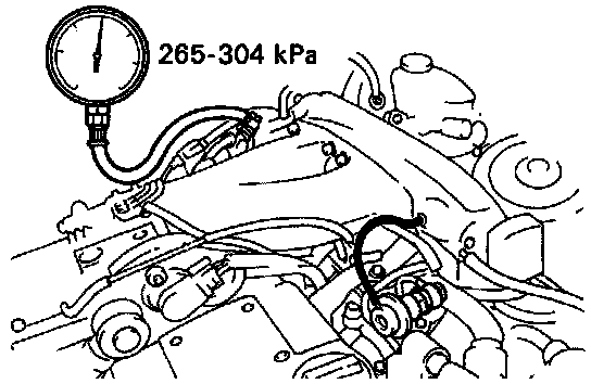- If pressure is not as specified, check the vacuum sensing hose and fuel pressure regulator.