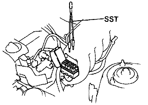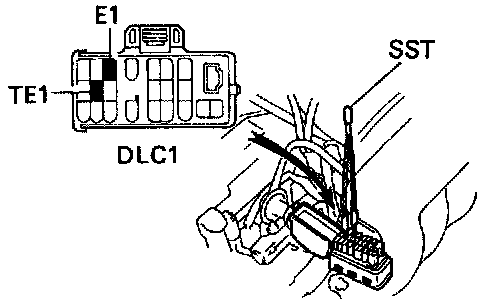 - Using SST 09843-18020, connect terminals TE1 and E1 of the DLC1.