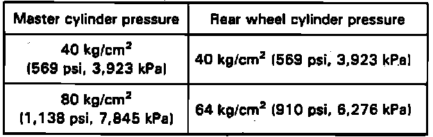 2. Raise master cylinder pressure and check pressure at rear wheel cylinders, compare to chart in Figs. 9. If pressure is incorrect, replace P and B valve.