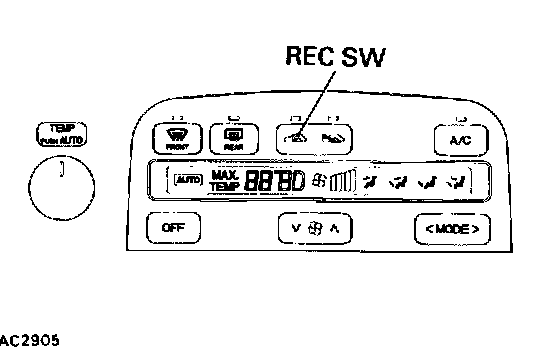 1. After entering the diagnostic trouble code check mode (sensor check mode) press the REC switch.