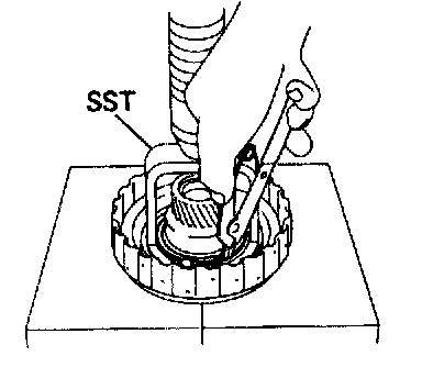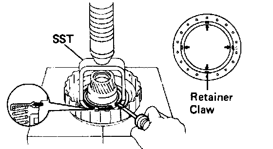 c. Install the snap ring with a screwdriver. Be sure the end gap of the snap ring is not aligned with the spring retainer claw.