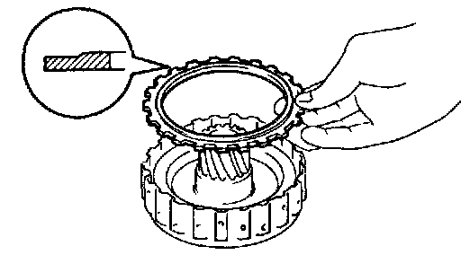 Install the thrust washer to the overdrive planetary gear, the groove side facing upward.
