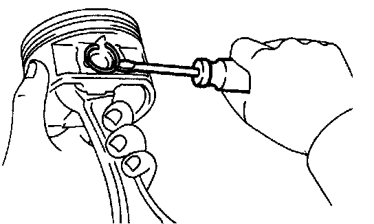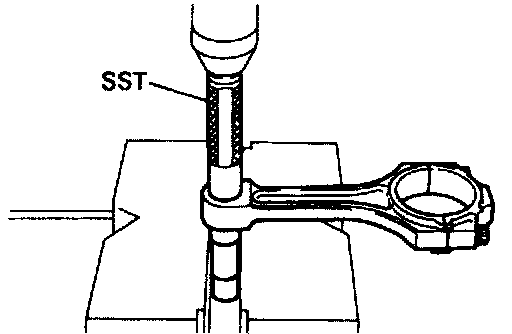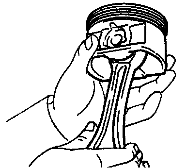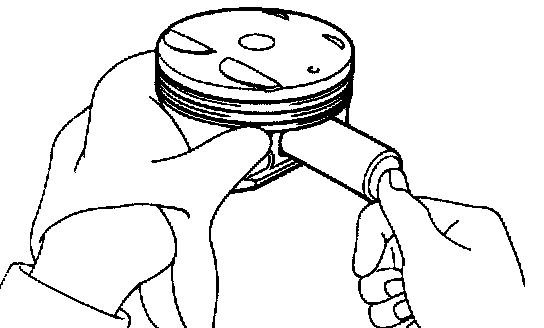 (e) Check the piston pin fit at normal room temperature. Coat the piston pin with engine oil, and push it into the connecting rod with your thumb.