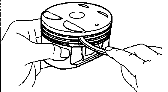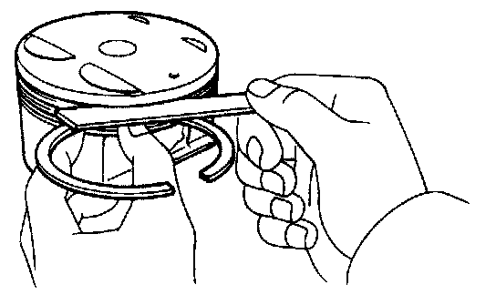 B. Inspect piston ring groove clearance Using a feeler gauge. measure the clearance between new piston right and the wall of the ring groove. Ring groove clearance: