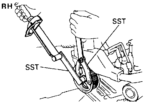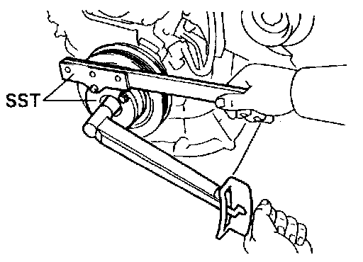(c) Using SST. install the pulley bolt. SST 09249-63010,09960-10010 (09962-01000, 09963-01000)