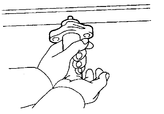 (b) Hold the tensioner with both hands and push the push rod strongly as shown to check that it doesn't move. If the push rod moves. replace the tensioner. NOTICE: Never hold the tensioner push rod facing downward.