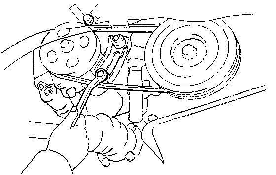 - Loosen the 2 bolts. and remove the drive belt.