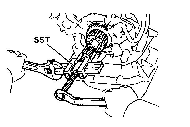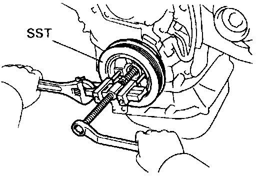 (b) Using SST, remove the crankshaft timing pulley. SST 09950-50010(09951 -05010,09952-05010, 09953-05010, 09953-05020, 09954-05010)