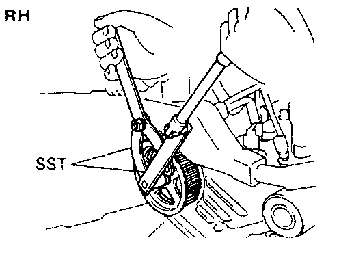 (b) Using SST, remove the LH timing pulley. SST 09960-10010 (09962-01000. 09963-01000)