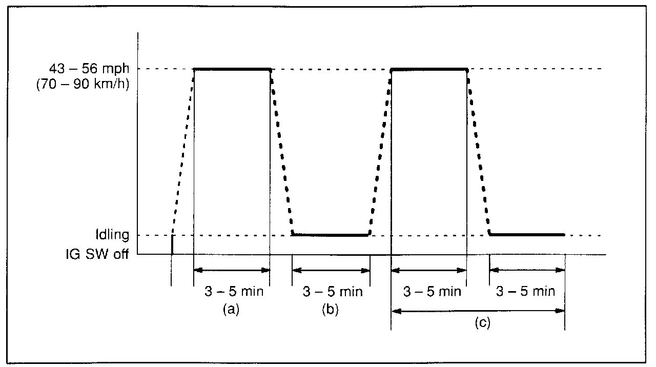 b. Drive the vehicle at 43 - 56 mph (70 - 90 km/h) for a period of 3 - 5 minutes.