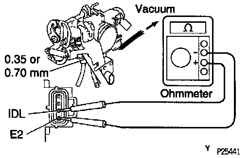 - Connect the test probe of an ohmmeter to the terminals IDL and E2 of the sensor.
