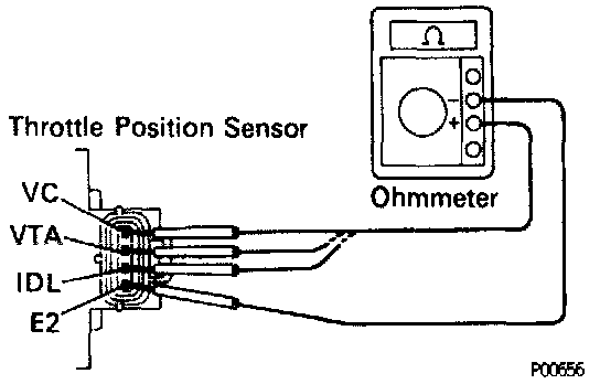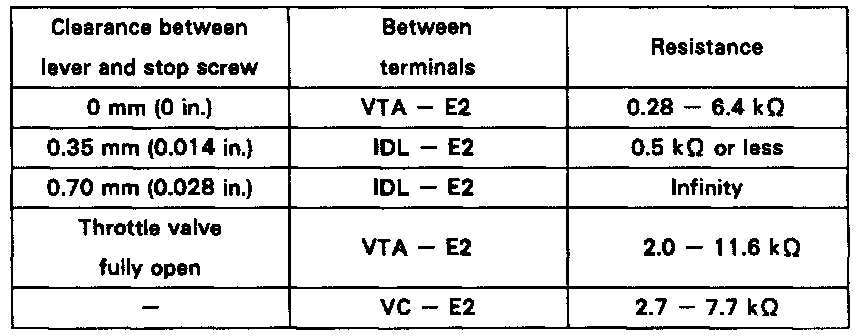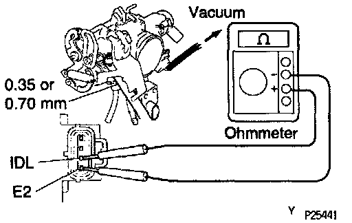Insert a feeler gauge between the throttle stop screw and stop lever.