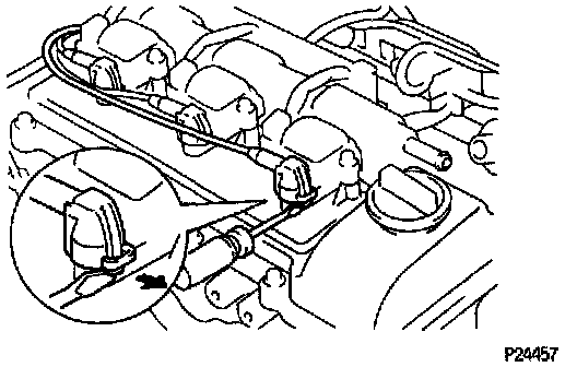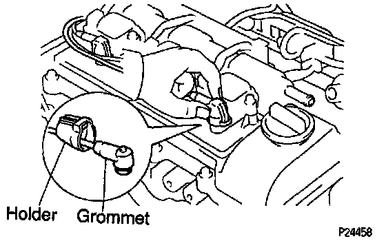 NOTICE: Check that the holder is correctly installed to the grommet and ignition coil as shown in the illustration.