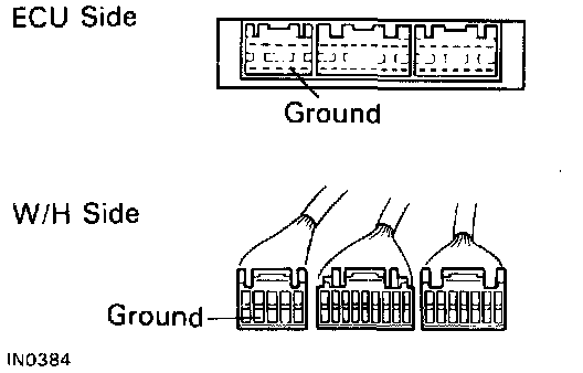 - Disconnect the ECU connector, check the ground terminals on the ECU side and the wire harness side for bend and check the contact pressure.