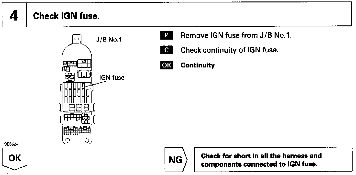 When the ignition switch is turned ON, battery positive voltage is applied to the coil, closing the contacts of the EFI main relay (Marking: EFI MAIN) and supplying power to the terminal +B of the ECM.