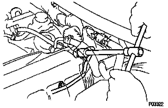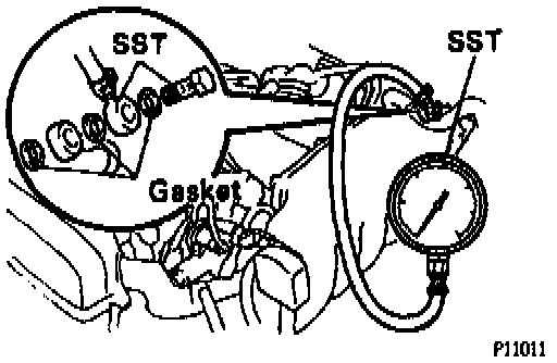 (s) After checking fuel pressure, disconnect the negative (-) terminal cable from the battery and carefully remove SST to prevent gasoline from splashing. SST 09268-45012