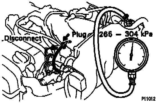 - If pressure is not as specified, check the vacuum sensing hose and fuel pressure regulator.