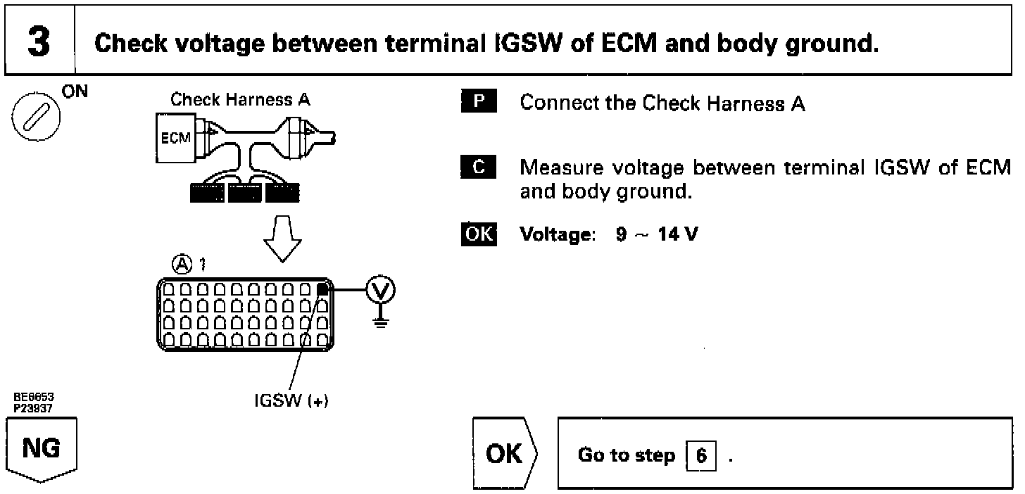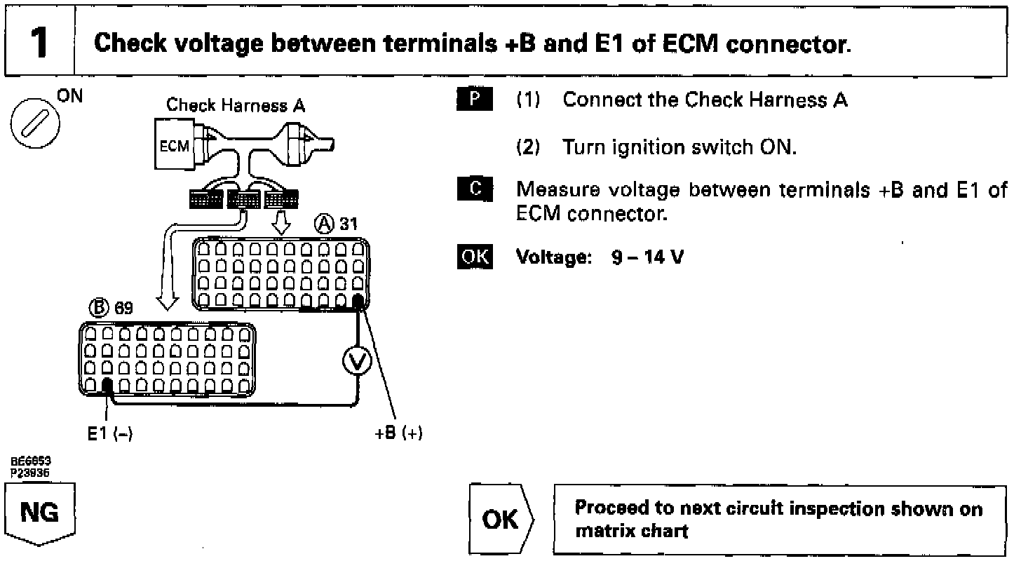 This signal causes current to flow to the coil, closing the contacts of the EFI main relay and supplying power to the terminals +B of the ECM.