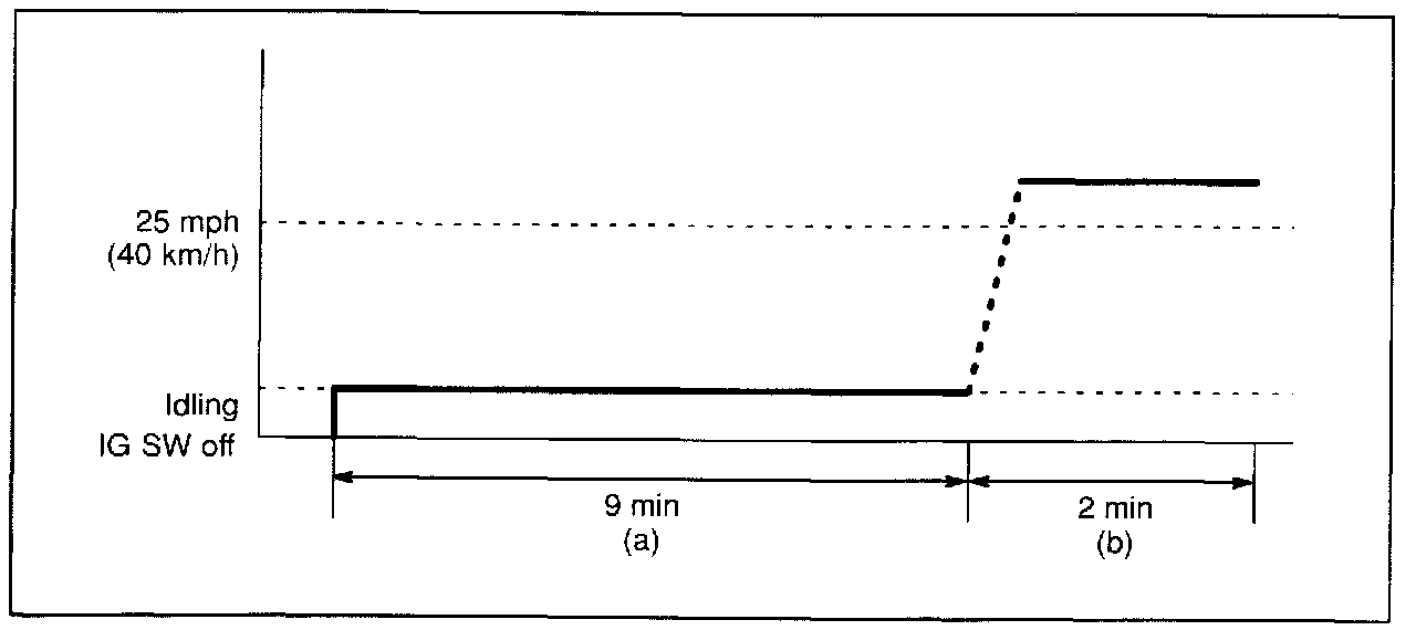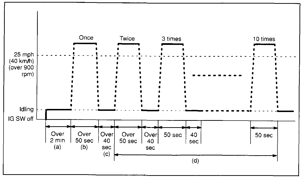 b. Drive the vehicle at 25 mph (40 km/h) or more for at least 50 seconds. Be sure engine speed remains above 900 rpm.