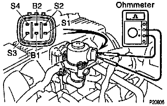 - Using an ohmmeter, measure the resistance between terminal B1 and B2 and other terminals (S1, S2, S3 and S4).